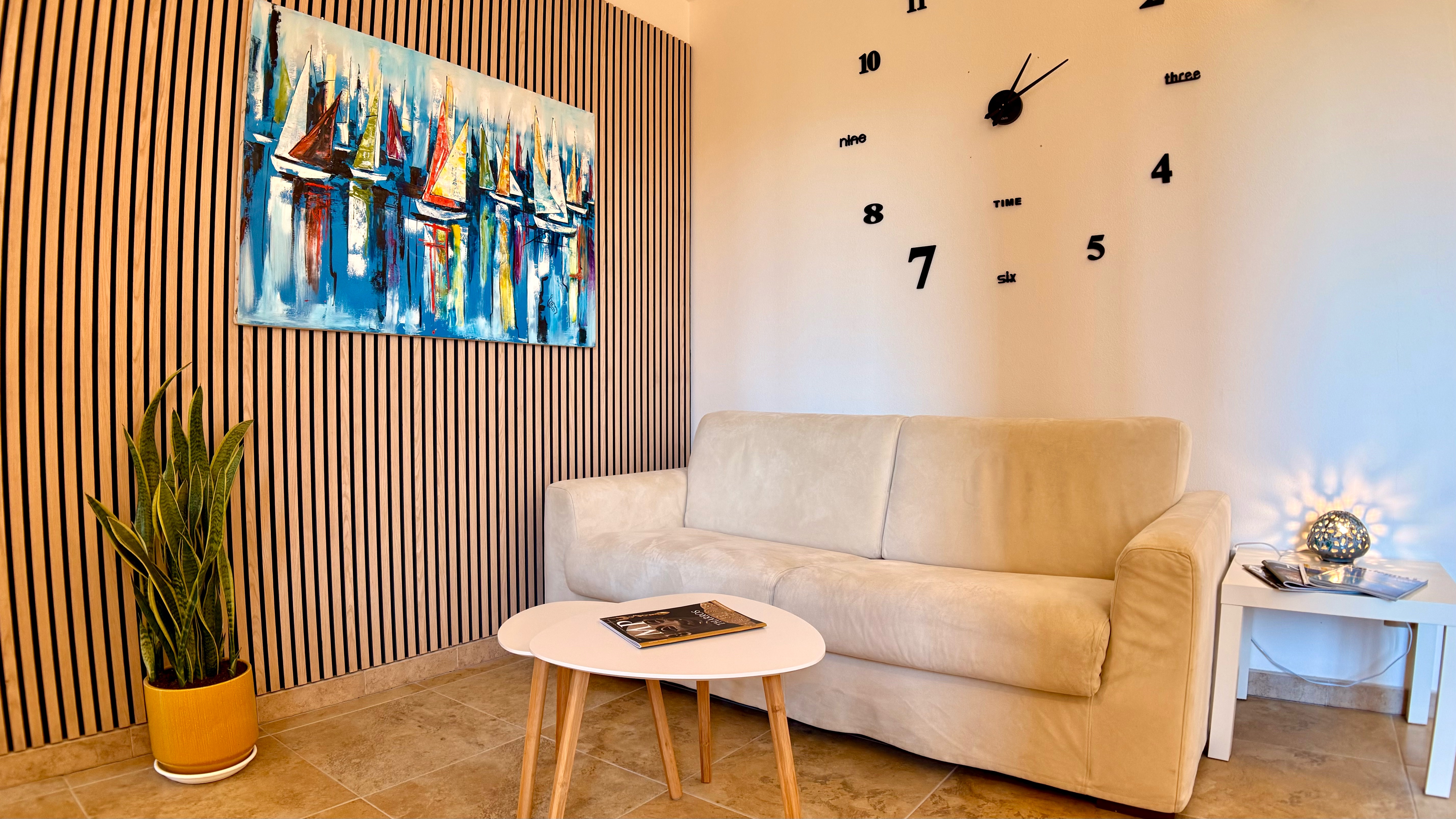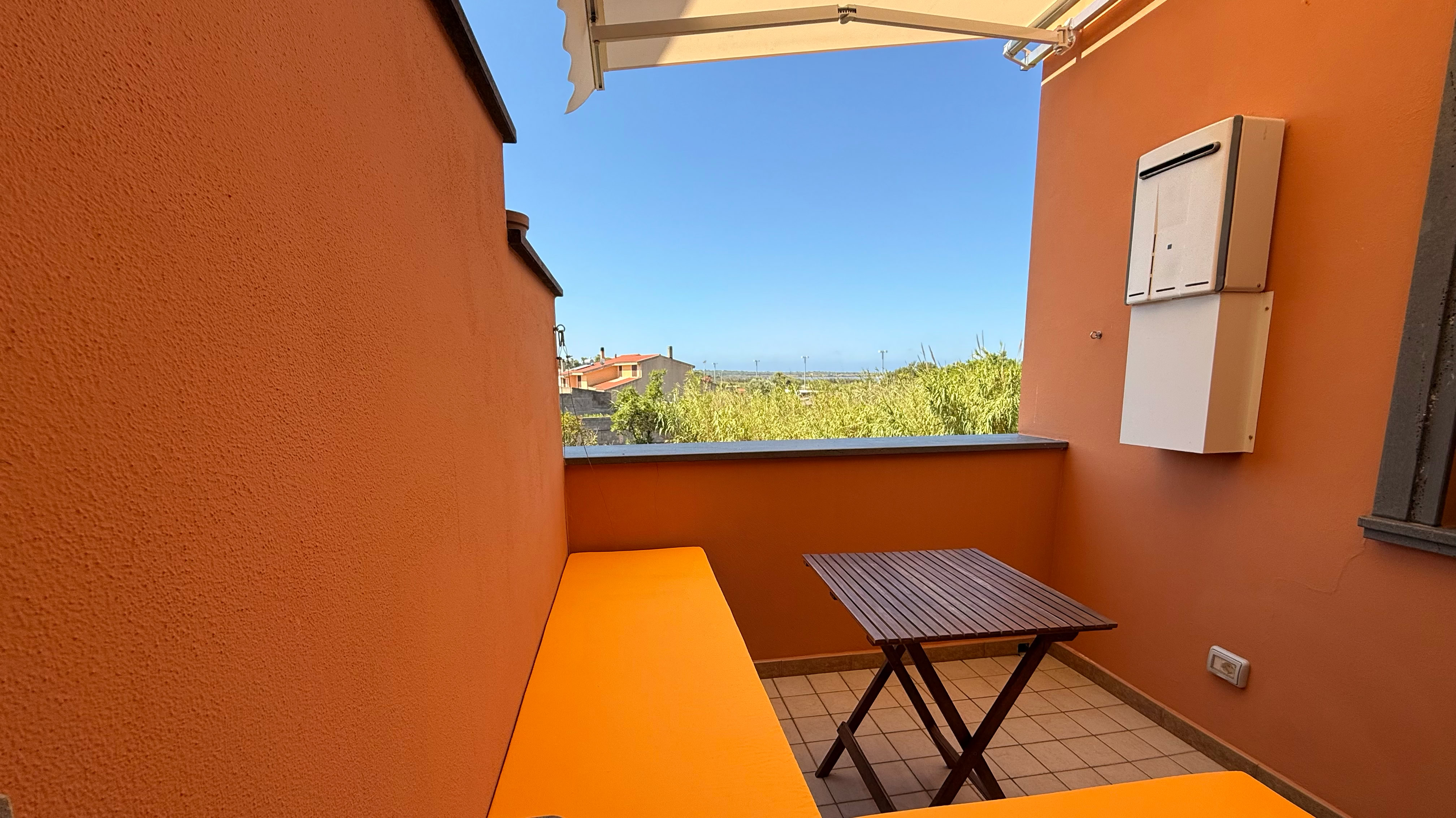 Appartamento moderno al primo piano, dispone di un ampio soggiorno/cucina, 1 camera da letto matrimoniale, cabina armadio con postazione scrivania, terrazzina ombreggiata e attrezzata , clima, Smart TV e Wi-Fi.